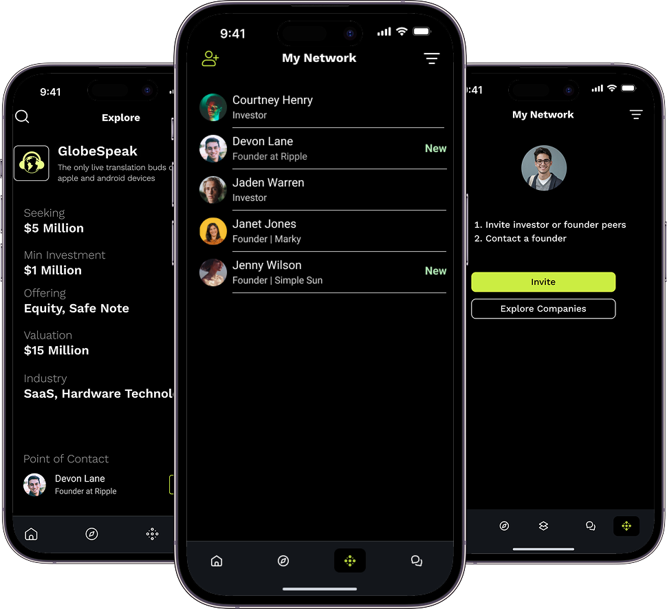 Grow your private community on your terms. Investors can invite other investors or connect with founders they choose, while founders send requests to investors and build lasting relationships when those requests are accepted.