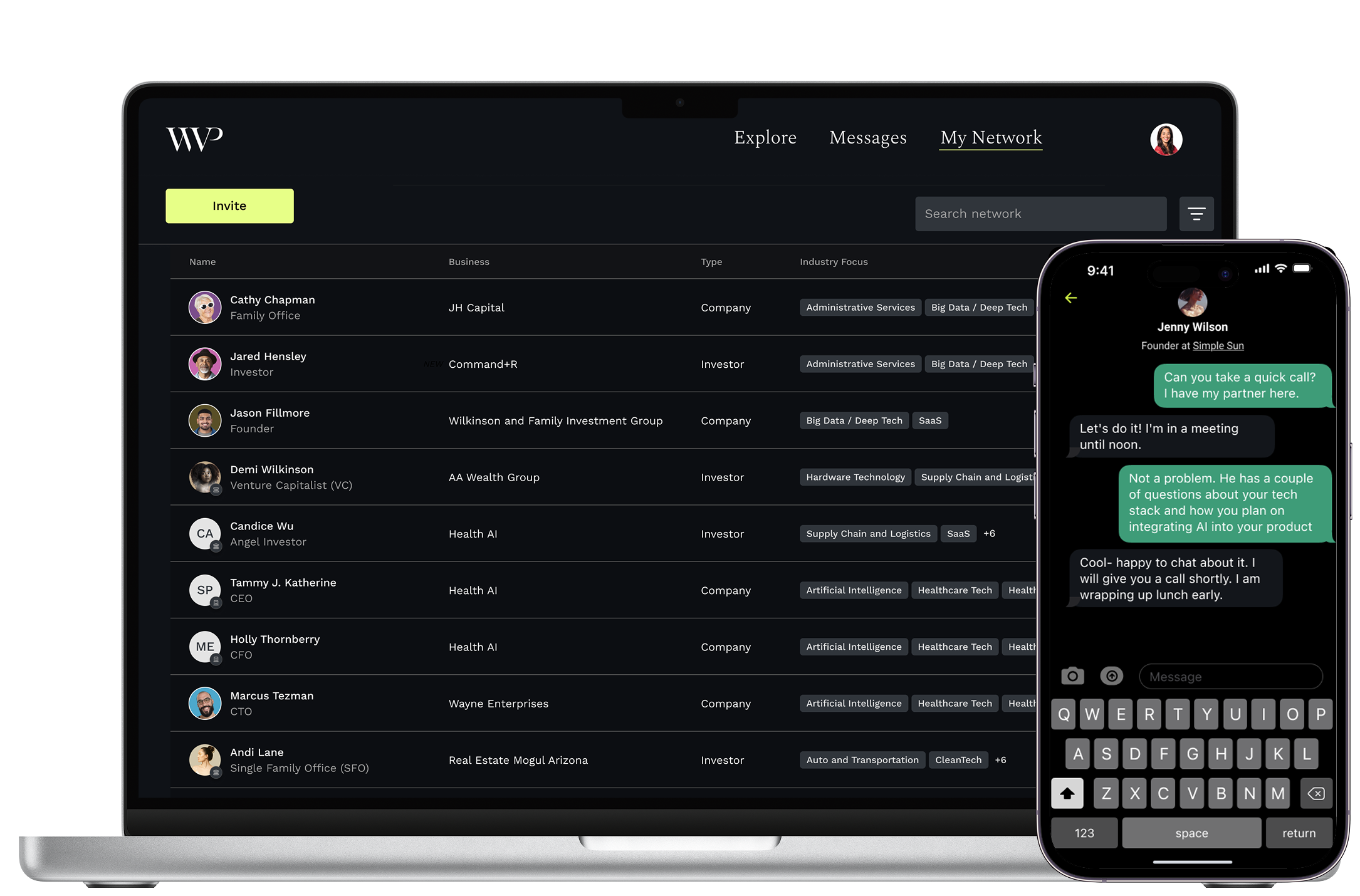 Stay engaged wherever you are. The WealthVP app makes it simple to check opportunities, respond to requests, and manage your network in real time from any iOS or Android device.